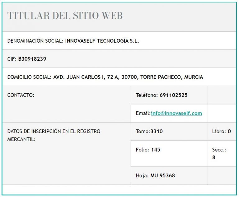 En cumplimiento del artículo 10 de la Ley 34/2002, de 11 de julio, de Servicios de la Sociedad de la Información y Comercio Electrónico, el Titular expone sus datos identificativos: